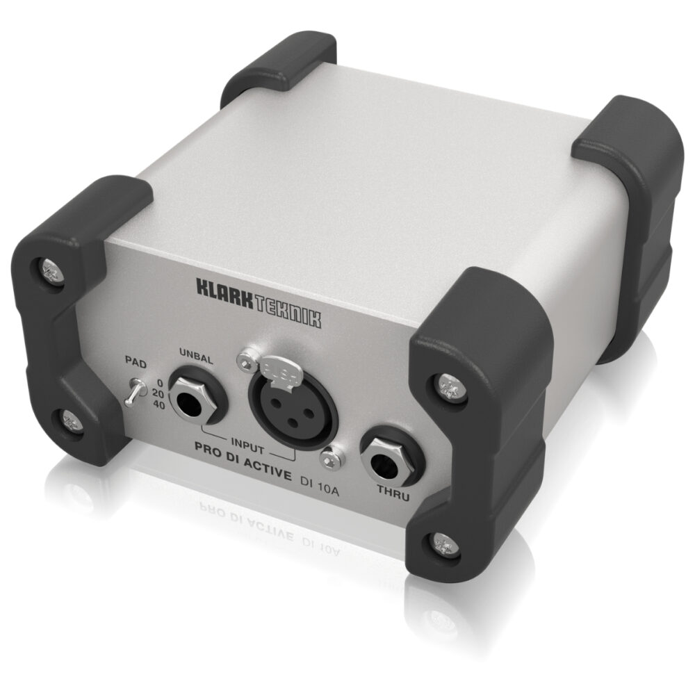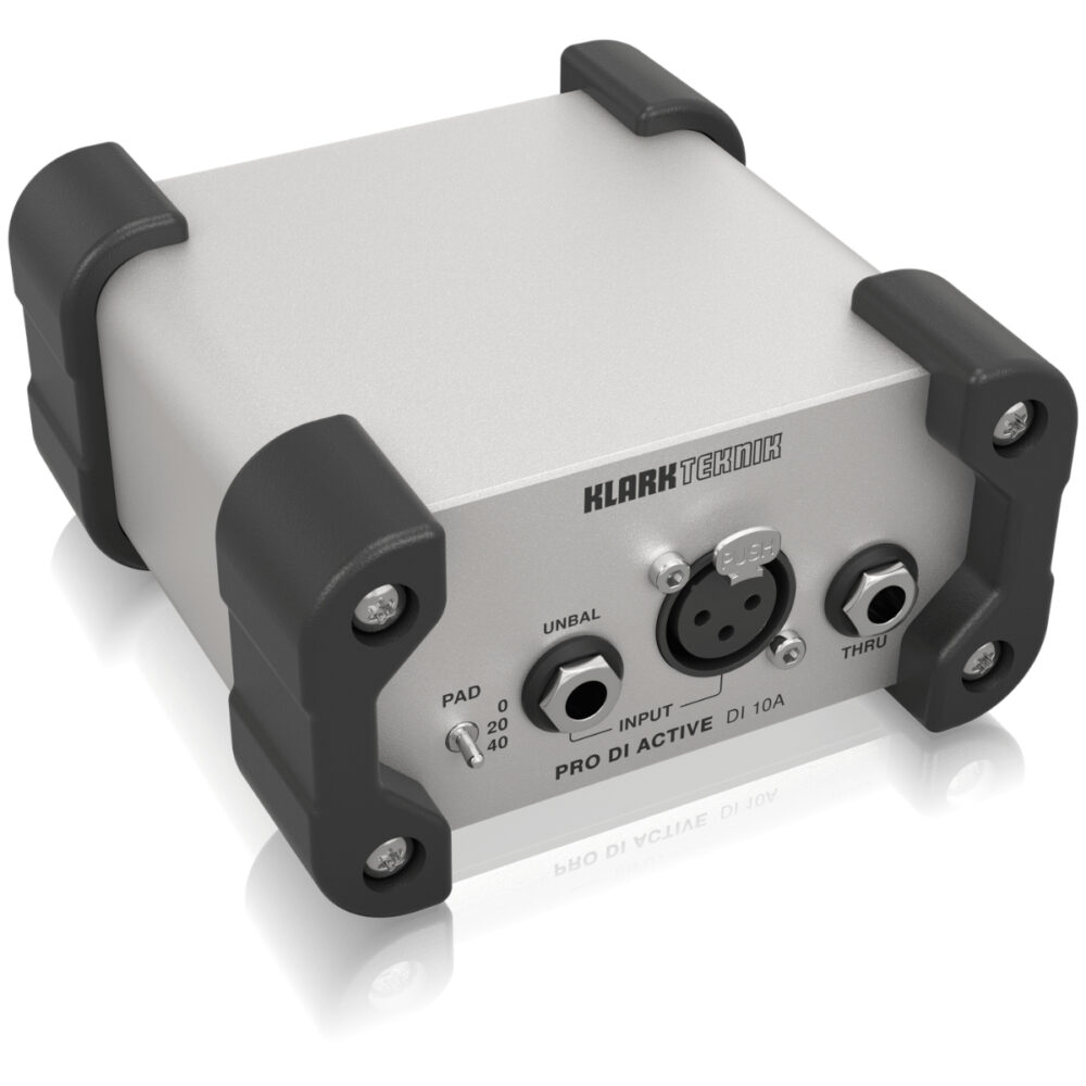 El Klark Teknik DI 10A es una caja DI (Direct Injection) activa profesional diseñada para convertir señales de instrumentos o fuentes electrónicas de alta impedancia no balanceadas en salidas balanceadas, permitiendo conectar directamente teclados, samplers, guitarras u otros instrumentos a consolas de mezcla, interfaces de audio o sistemas de PA con baja pérdida de señal y mínima interferencia, preservando el carácter tonal original de la fuente sonora.