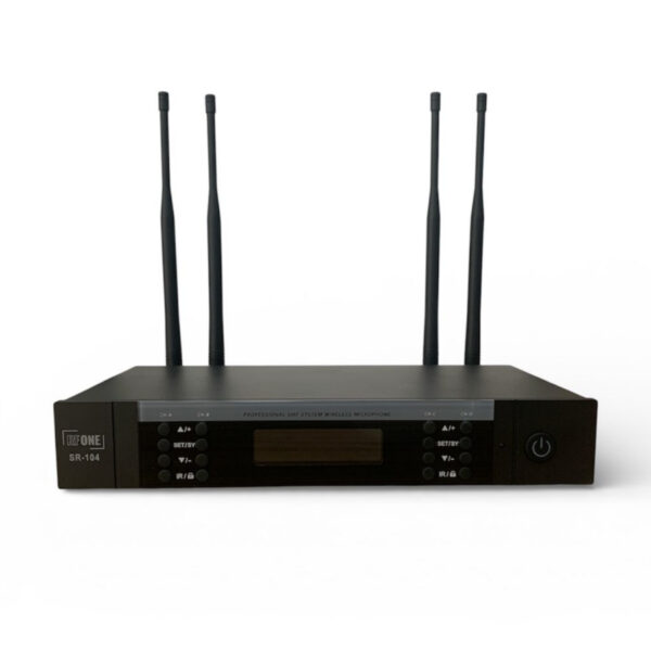 El RF-104 4 Channel Digital Wireless Microphone System es un sistema de micrófonos inalámbricos digital de 4 canales diseñado para brindar audio claro, estable y libre de interferencias en presentaciones en vivo, iglesias, eventos corporativos, estudios y producciones audiovisuales. Su tecnología inalámbrica avanzada ofrece alta fidelidad de sonido y operación confiable, facilitando la captura de voces principales y secundarias sin complicaciones de cables.