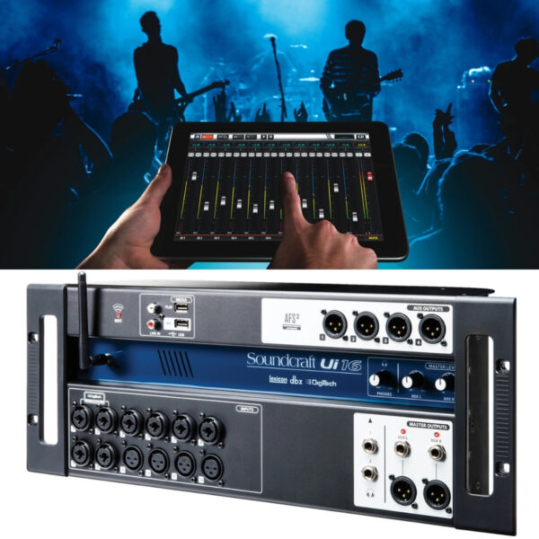 El Soundcraft UI16 es un mezclador digital de 16 canales con control vía red, ideal para instalaciones en vivo, estudios híbridos, eventos corporativos, iglesias y salas de conferencias. Este mezclador ofrece procesamiento profesional, routing flexible y calidad de sonido Soundcraft reconocida, con la ventaja de controlarse desde cualquier dispositivo con navegador (PC, tablet o móvil) en la misma red.