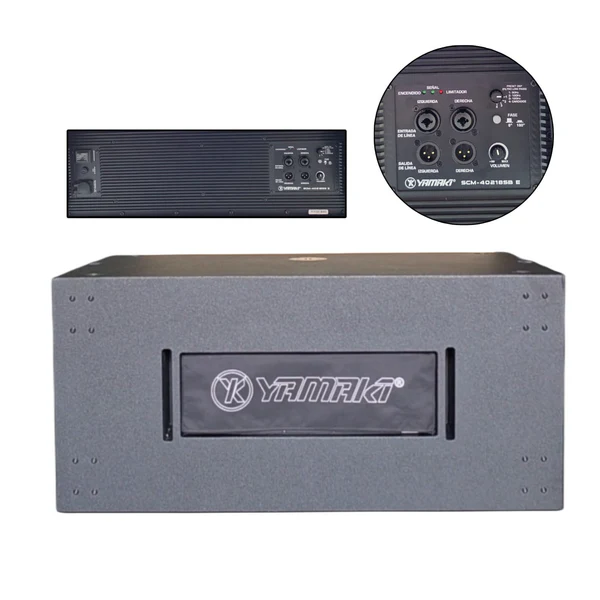 El Yamaki SCM40218SB es un subwoofer activo de alta potencia diseñado para proporcionar graves profundos y contundentes en aplicaciones de sonido profesional, desde sistemas PA completos hasta eventos en vivo, conciertos, salas de fiesta, DJs y lugares de gran audiencia. Con dos drivers de 18 pulgadas y amplificación interna de alto rendimiento, este subwoofer entrega presión sonora excepcional y respuesta extendida en frecuencias bajas, mejorando significativamente la presencia del rango grave en configuraciones de audio exigentes.